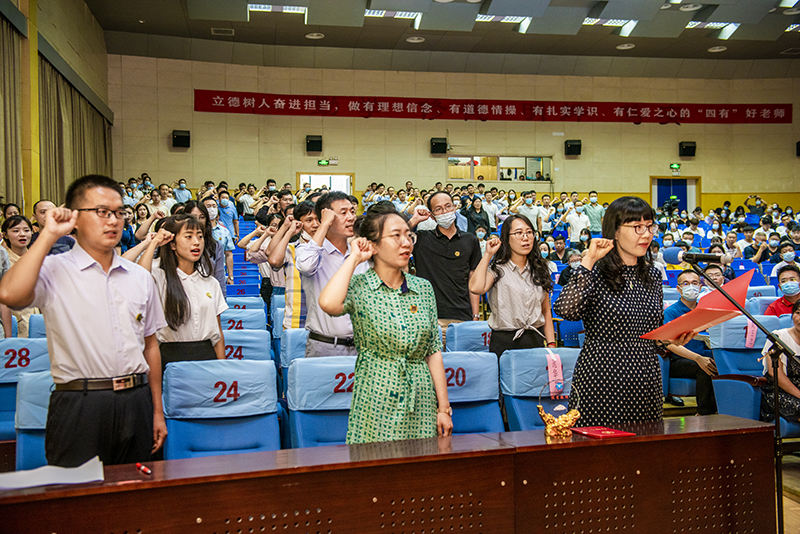 “我志愿加入煙臺大學,成為一名光榮的人民教師!我宣誓:愛國守法,敬業愛生,教書育人,知行合一……做黨和人民滿意的好老師,為崇高的教育事業而努力奮斗!”學校2020年新入職教師在煙臺大學優秀教師范華英教授帶領下,面向國旗莊嚴宣誓,立志成為一名合格的人民教師。