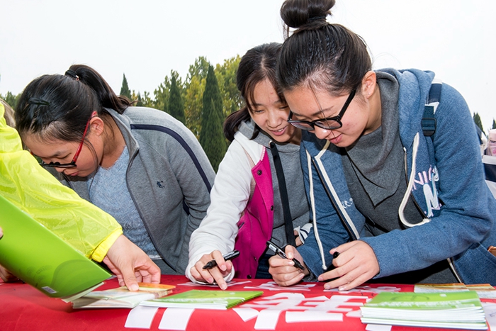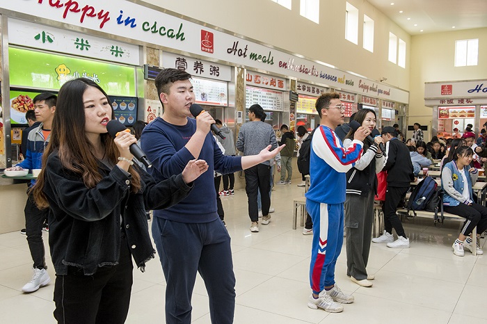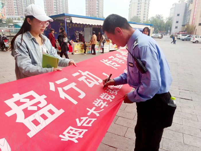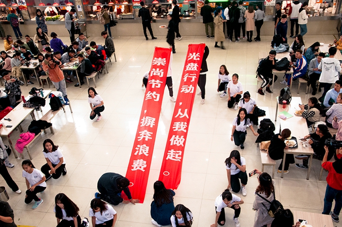本次活動(dòng)主會(huì)場(chǎng)設(shè)在煙臺(tái)大學(xué)第一餐廳廣場(chǎng),在“世界糧食日和糧食安全系列宣傳活動(dòng)”宣傳板前,煙臺(tái)市糧食局等單位工作人員和煙臺(tái)大學(xué)志愿者一起向就餐師生發(fā)放《世界糧食日宣傳冊(cè)》,宣傳世界糧食日主題理念及糧食安全、科學(xué)儲(chǔ)糧、糧油營養(yǎng)健康方面的科普知識(shí)。師生們也紛紛響應(yīng)號(hào)召,在“愛糧節(jié)糧從‘光盤行動(dòng)’做起,校園文明始于一點(diǎn)一滴”的橫幅上簽名。與此同時(shí),一場(chǎng)由30名校大學(xué)生藝術(shù)團(tuán)的志愿者發(fā)起的“惜糧”——快閃活動(dòng)在學(xué)校第一餐廳內(nèi)上演,同學(xué)們通過歌曲《憫農(nóng)》和舞蹈《燃燒我的卡路里》向大家發(fā)出“崇尚節(jié)約、摒棄浪費(fèi),光盤行動(dòng)、從我做起”的倡議。據(jù)悉,我校當(dāng)天在一、六、七餐廳及留學(xué)生餐廳、南校區(qū)十餐廳、新世界商場(chǎng)共設(shè)立了6個(gè)活動(dòng)場(chǎng)所,約有150名學(xué)生志愿者參與宣傳工作,向就餐師生發(fā)放宣傳冊(cè)2000余本,上千名大學(xué)生簽名響應(yīng)愛糧節(jié)糧的倡議。