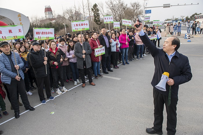 3月8日下午,由校工會、婦委會主辦的煙臺大學2019年慶祝“三八”國際勞動婦女節健身長跑活動在學校東門順利舉行。黨委常委、副校長郝曙光來到活動現場,代表學校向為學校發展做出貢獻的女教工們表示節日的祝福和衷心的感謝。全校1700余名女教工參加了此次健身長跑活動,用運動的方式慶祝屬于自己的節日。