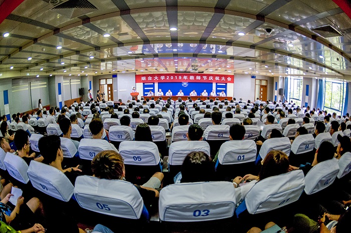 三十五載同舟濟(jì),七十華誕共潮生。9月10日下午,煙臺(tái)大學(xué)2019年教師節(jié)慶祝大會(huì)在逸夫廳舉行。學(xué)校領(lǐng)導(dǎo)張偉、郭善利、張殿臣、孫祥斌、鄧昌亮、宋中民、周勝良、王強(qiáng)出席,校長(zhǎng)郭善利主持,黨委書記張偉發(fā)表講話。