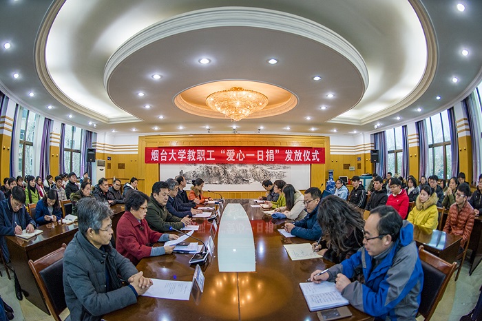 12月11日下午,煙臺大學教職工“愛心一日捐”發放儀式在辦公樓201會議室舉行。副校長孫祥斌、鄧昌亮出席,校工會、學生工作處主要負責人,分工會主席、教職工代表、受助學生參加頒發儀式。