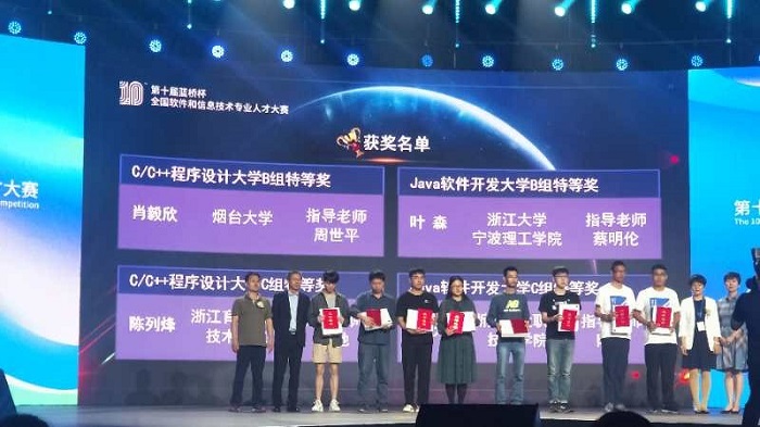 由我校派出的優秀學子在總決賽中獲得軟件類C/C++程序設計大學B組特等獎一項(2018級計算機與科學技術專業:肖毅欣,指導老師 周世平),二等獎六項(軟件類 Java A組:楊公棟,指導老師 劉其成;軟件類 C/C++ B組:孫魯,桑得寶,陳林旭,張欽秀,呂亞楠,指導老師 封瑋,譚征,孫紅霞,周世平),三等獎九項(軟件類 C/C++ B組:曾凡超,王文碩,彭達能,趙俊杰,武傳濤,姜淇瀚,路慶毅,王國輝,賈宗盛 指導老師 譚征,盧云宏,孫紅霞)。優秀獎三項(軟件類 C/C++ B組:孫長哲,孫洪坤,張紫越 指導老師 孫紅霞,譚征,封瑋)