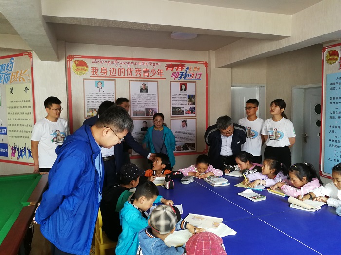 在貴南縣,張偉一行走進(jìn)團(tuán)縣委“青年之家”輔導(dǎo)站,實(shí)地察看同學(xué)們現(xiàn)場(chǎng)授課,現(xiàn)場(chǎng)檢驗(yàn)支教隊(duì)員的教學(xué)效果。當(dāng)日,隊(duì)員們向當(dāng)?shù)匦W(xué)生講授語(yǔ)文、歷史、地理、數(shù)學(xué)、英語(yǔ)等內(nèi)容,組織知識(shí)競(jìng)答大賽、趣味運(yùn)動(dòng)會(huì)、防火防震安全教育知識(shí)講座等素質(zhì)拓展活動(dòng)。張偉與支教隊(duì)員現(xiàn)場(chǎng)交流,在參觀過(guò)程中逐一詢問(wèn)并悉心指導(dǎo),引導(dǎo)隊(duì)員們進(jìn)一步提升授課質(zhì)量、開(kāi)拓授課思路。在貴德縣“尚書(shū)房”書(shū)屋,支教隊(duì)員們分別圍繞著“絲路新世界、青春中國(guó)夢(mèng)”國(guó)家專項(xiàng)展開(kāi)了豐富多彩的支教活動(dòng),宣講國(guó)家“一帶一路”倡議及國(guó)家各項(xiàng)方針政策。走訪過(guò)程中,張偉對(duì)實(shí)踐隊(duì)員不懼艱苦參與實(shí)踐以及深入西部地區(qū)基層一線的表現(xiàn)給予充分肯定。張偉指出,大學(xué)生社會(huì)實(shí)踐是廣大青年學(xué)生“受教育、長(zhǎng)才干、做貢獻(xiàn)”的有效途徑,要積極響應(yīng)國(guó)家號(hào)召,主動(dòng)融入國(guó)家重大戰(zhàn)略,結(jié)合自身所學(xué),深入開(kāi)展社會(huì)實(shí)踐,要帶著“情懷”、帶著“思考”、帶著“問(wèn)題”、帶著“虛心”深入一線,深入基層,真正使自己受到洗禮、受到教育,為西部發(fā)展、民族復(fù)興貢獻(xiàn)青春力量。