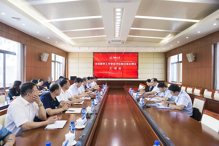 校長(zhǎng)郭善利代表學(xué)校對(duì)專家組一行表示歡迎,并從定位與目標(biāo)、師資隊(duì)伍建設(shè)、教學(xué)資源建設(shè)、人才培養(yǎng)過程、學(xué)生發(fā)展、教學(xué)質(zhì)量保障等6個(gè)方面向?qū)<医M匯報(bào)整改落實(shí)情況。郭善利表示,學(xué)校將以此次審核評(píng)估整改為契機(jī),深入貫徹全國(guó)、全省教育大會(huì)精神和新時(shí)代全國(guó)高等學(xué)校本科教育工作會(huì)議精神,堅(jiān)持“以本為本”,進(jìn)一步強(qiáng)化教學(xué)中心地位,持續(xù)提升人才培養(yǎng)質(zhì)量,潛心打造一流本科教育,為建設(shè)特色鮮明、部門學(xué)科具有國(guó)際影響力的高水平大學(xué)而努力奮斗。