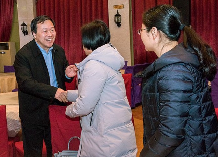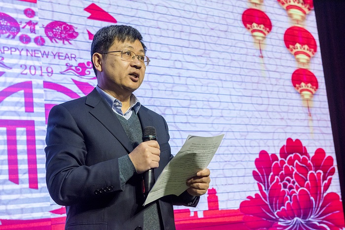 2月2日上午,于維纮學(xué)術(shù)交流中心一樓大廳內(nèi)張燈結(jié)彩喜氣洋洋,校領(lǐng)導(dǎo)張偉、郭善利、孫祥斌、鄧昌亮、郝曙光、王強(qiáng),曾擔(dān)任學(xué)校領(lǐng)導(dǎo)職務(wù)的韓向利、郭明瑞、劉永鎰、于文書及原校長(zhǎng)助理陸學(xué)明,同師生員工代表歡聚一堂,共賀己亥新春。