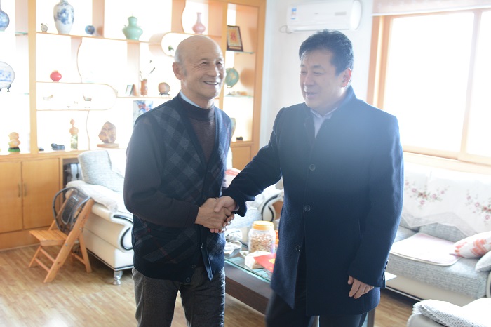 走訪過程中,學校領導與老同志親切交談,詳細詢問了老同志們的身體和生活狀況,介紹了學校一年來的發展情況,感謝他們多年來為學校發展做出的貢獻,虛心聽取他們對學校改革發展的意見和建議,希望老同志們一如既往地關心支持學校發展,并代表學校祝愿老同志們新春愉快、身體健康、闔家幸福。