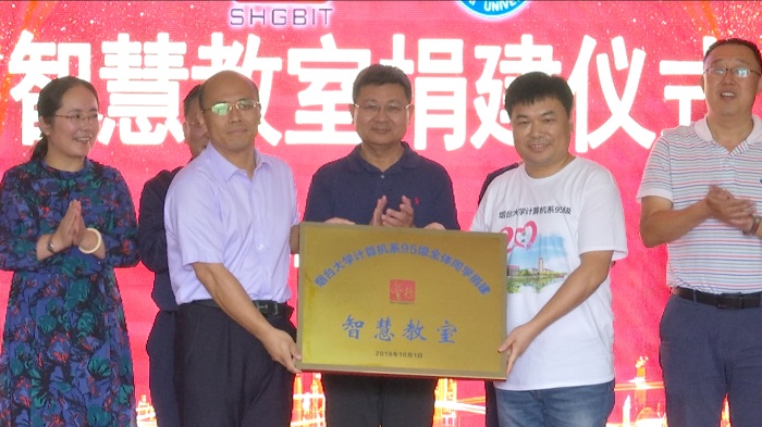 校友們通過多種方式表達了對母校的真摯祝福和感恩之情。計算機與控制工程學院1995級全體校友為支持母校進一步實現教育教學的數字化、現代化、科技化,給老師提供更加開放、互動、智能的教學環(huán)境,給學弟學妹提供更加便捷、舒適、高效的學習環(huán)境,特捐建一間“金橋”智慧教室。人文學院1995級校友張廣亮專門作詞一首——《水調歌頭·重返煙園》:“久有齊集意,重返煙大園。攜手來尋故地,舊貌變新顏。館舍樓臺依舊,四年初心未改,壯志比當年。大美三元湖,情緣永不斷。孺牛踞,鐘樓立,堅如磐。廿載悄然而去,彈指一揮間。九州才俊歸來,五湖賢士集聚,談笑凱歌還。相去無別意,真情駐心田。”