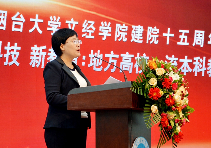 煙臺大學校長郭善利在致辭中指出,煙臺大學文經學院在15年的發展歷程中,高點定位、高速發展,伴隨著國家發展、時代前進和教育轉型而不斷改革、穩步提升。學院規模不斷壯大,從最初的700余名在校生發展到現在的13000余名學生,學院在人才培養、學科專業、科學研究、社會服務、國際合作等多方面都取得了令人矚目的辦學成就。煙臺大學將一如既往地支持幫助煙臺大學文經學院,助力學院又好又快、更好更快發展。郭善利指出,文經學院遵循了“創新、務實、開放、節儉”的原則,隆重而簡樸地舉辦慶典暨發展戰略高端論壇,這是學院發展史上繼往開來的一件大事,也是文經人續寫光榮與夢想的嶄新起點。希望文經學院以習近平新時代中國特色社會主義思想為指導,深入貫徹落實全國教育大會精神,牢牢把握戰略機遇期,繼續深化教學教育改革,進一步總結辦學經驗,弘揚“和合盡責學習創新”的校園文化,科學規劃未來發展,為早日把學院建設成全國一流獨立學院而努力奮斗。