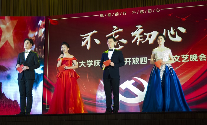 合唱《在希望的田野上》拉開了晚會的帷幕,歌曲重溫了改革開放初期那段春雷激蕩春風拂面的崢嶸歲月。歌曲《跟你走》《不忘初心》《向往》展現了改革開放40年來,中國共產黨不忘初心,牢記使命,堅持以人民為中心的發展思想,堅持把人民群眾對美好生活的向往作為奮斗目標,團結帶領廣大人民砥礪奮進,實現了從“趕上時代”到“引領時代”的偉大跨越。古箏合奏《清明上河圖》、蒙古族舞蹈《鄂爾多斯》、彈撥樂合奏《送我一支玫瑰花》、藏族舞蹈《天浴》,表現了各族人民經過改革開放40年的發展,過上了美好的生活,有信心和能力去實現中華民族偉大復興的中國夢。小提琴合奏《我愛你,中國》 、舞蹈《母親的麥田》、歌曲《祖國,慈祥的母親》傾訴煙大師生對改革開放偉業的拳拳之情,抒發了對偉大祖國母親的深深摯愛。合唱《我唱出了世界的聲音》《我心歌唱》唱出了煙大師生落實學校第四次黨代會精神,按照“一二三”戰略部署,建設特色鮮明、部分學科具有國際影響力的高水平大學的雄心壯志和使命豪情。晚會在歌舞《我們的新時代》中落下帷幕。