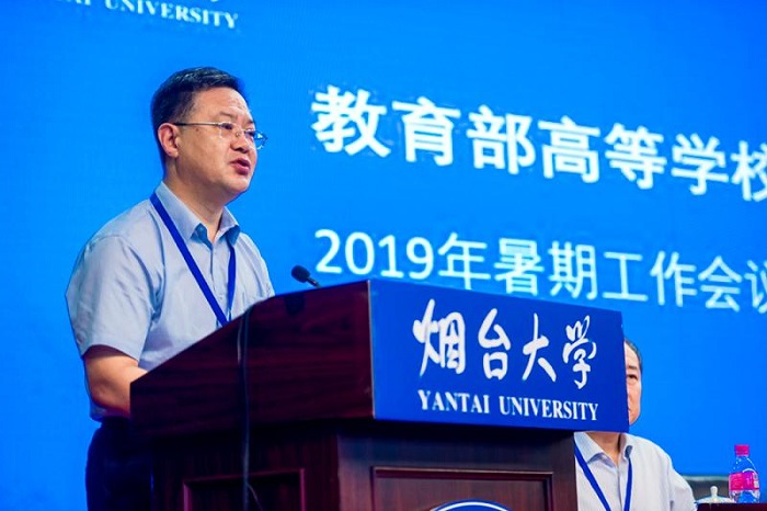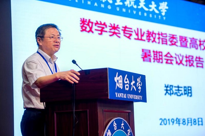 8月8日上午,由教育部高等學校數學類專業教學指導委員會主辦、高等教育出版社協辦、煙臺大學承辦的教育部高等學校數學類專業教學指導委員會2019年暑期工作會議暨全國高校數學學科院系主任聯席會在煙臺召開。中國科學院院士、教育部高等學校數學類專業教學指導委員會主任、北京航空航天大學教授鄭志明,省委教育工委委員、省教育廳黨組成員、副廳長白皓,煙臺大學黨委書記張偉,高等教育出版社副總編輯林金安,省教育廳高教處處長高磊,教育部高等學校數學類專業教學指導委員會全體委員以及全國各地高校數學學科院系負責人近300人參加會議,會議由煙臺大學副校長宋中民主持。