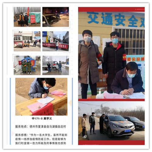 人文學院發布黨員行動線上倡議,學生黨員積極投身家鄉所在地抗“疫”一線進行志愿服務活動,中171-5 團支部高學義在德州市夏津縣白馬湖鎮白莊村參與志愿服務,為村莊做一些力所能及的事情。中181-2團支部劉凌飛在濟南市章丘區索家村志愿服務期間,不僅為年齡較大的防疫工作人員分擔繁重的工作,而且深刻體會到一名真正的黨員該有的責任和擔當。中191-6團支部董加奎談及自己在安徽省阜南縣洪河橋鎮洪河橋村志愿服務時說道:“僅僅在參加志愿者活動的一個上午,我就已經感受到了每一個卡點守衛者的不易。”齊魯壹點深入報道了人文學子高學義積極參與地方防疫工作的典型事跡。