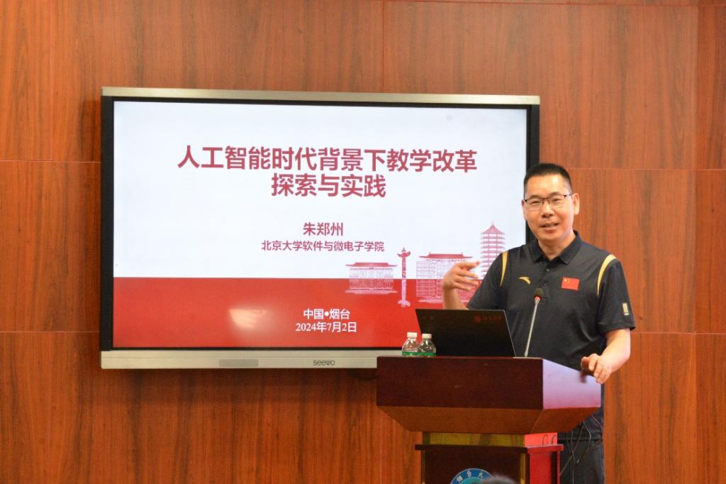 【本站訊】7月2日下午,學校在綜合樓629舉辦數智教育專題講座,邀請北京大學教務長辦公室主任、北京大學教師教學發展中心主任、數智教育發展國際大學聯盟秘書長孫華教授,中國計算學會教育專委執行委員、全國高校計算機教育研究會理事、工信部ITSS應用示范區評估專家組組長、北京大學軟件與微電子學院朱鄭州副教授進行數智化與教育變革創新經驗分享。來自各二級學院的80余名骨干教師參加培訓。