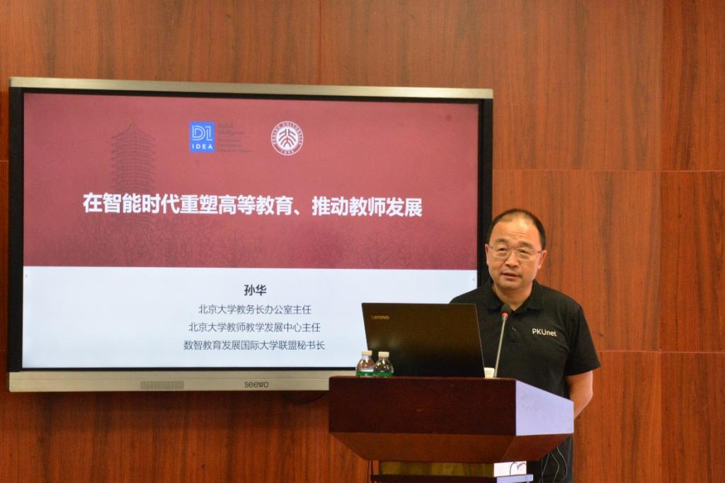 孫華教授以“在智能時代重塑高等教育、推動教師發展”為主題,他從當下國際教育發展的前沿視角系統闡述了數字化智能化對未來大學教育的影響,指出“批判性思維”的養成是未來教育的關鍵,并以北大教育改革實踐案例為例,進行了博伴助教應用、文理融合發展、“101”計劃核心課程建設等教學創新分享。
